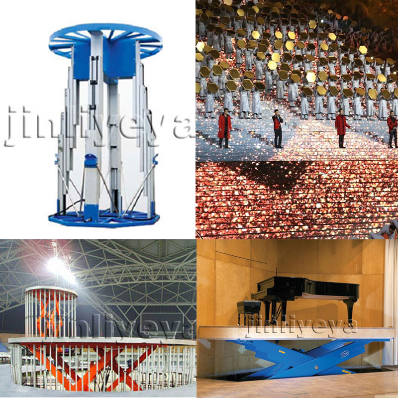 液壓升降舞臺(tái)也叫舞臺(tái)升降機(jī)專門安裝在舞臺(tái)上,用于舞臺(tái)升降及旋轉(zhuǎn)叫舞臺(tái)升降機(jī)。有升降、旋轉(zhuǎn)、傾斜等多種功能,控制采用自鎖、互鎖、行程開關(guān)、機(jī)械限位、液壓防爆等保護(hù)措施。