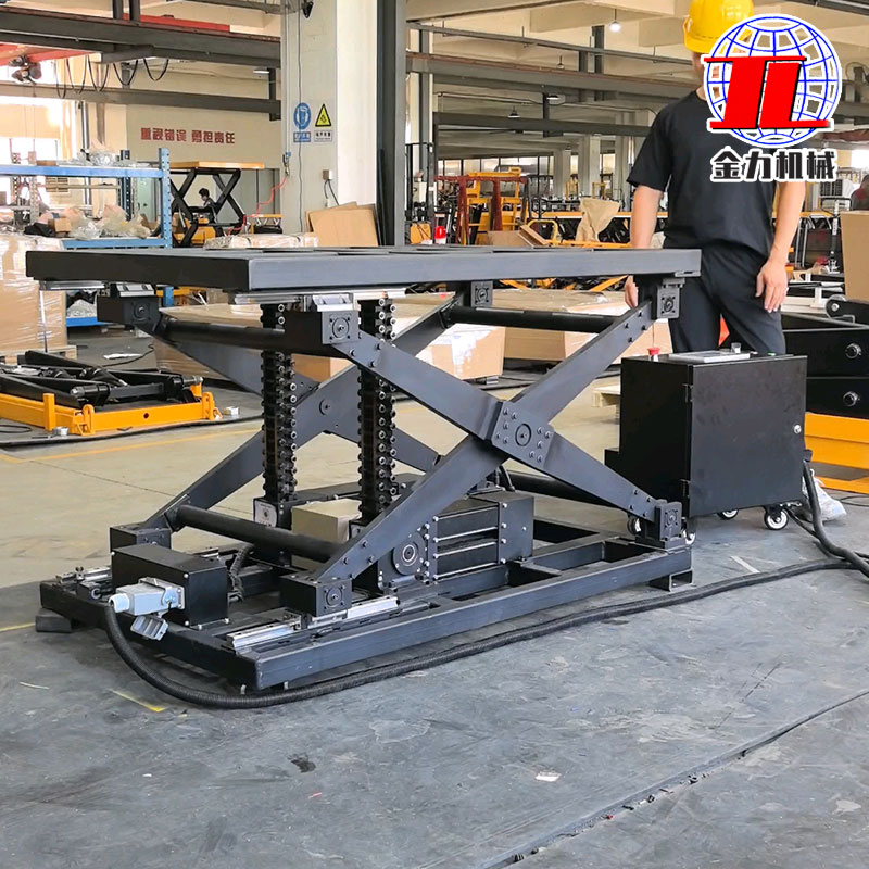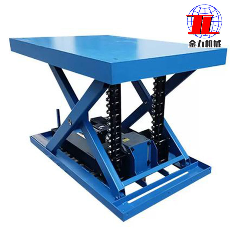 工作原理:通過驅(qū)動裝置的轉(zhuǎn)動,使剛性鏈條上的連桿發(fā)生相對運(yùn)動,從而改變載重平臺的高度。以金力升降機(jī)為例,當(dāng)電機(jī)驅(qū)動齒輪轉(zhuǎn)動時(shí),與齒輪嚙合的剛性鏈條會在垂直方向上做線性運(yùn)動,位于驅(qū)動盒中的垂直導(dǎo)向?qū)φ麄€(gè)鏈條隊(duì)列提供支持和優(yōu)化,并將鏈接鎖住,實(shí)現(xiàn)載重平臺的平穩(wěn)升降。